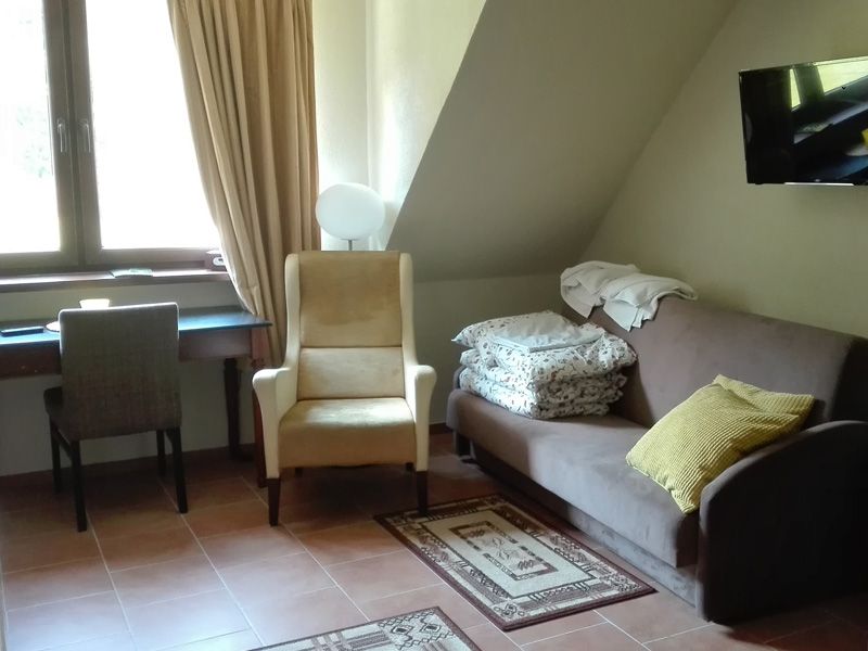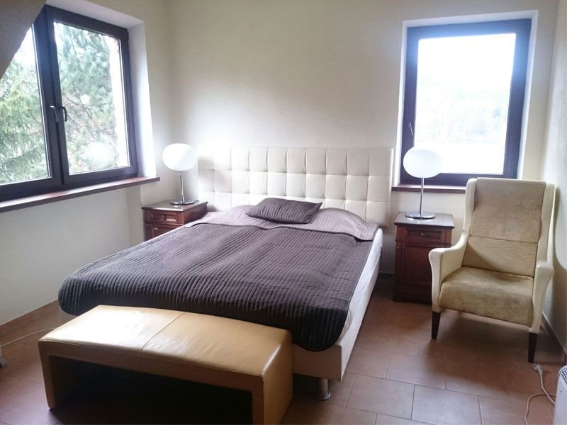Pokoje przeznaczone są dla maksymalnie 4 osób. W zależności od preferencji - dostępne jest łóżko małżeńskie + rozkładana kanapa, łóżko pojedyncze lub łóżko piętrowe.