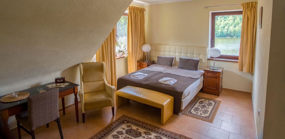 Pokoje typu standard to wspaniała opcja noclegu dla par lub małych rodzin z dziećmi. Duża powierzchnia oraz przytulne wnętrze z pewnością sprawią, że pobyt będzie komfortowy oraz relaksujący. Część pokoi posiada doskonały widok na jezioro lub zielony teren ośrodka.